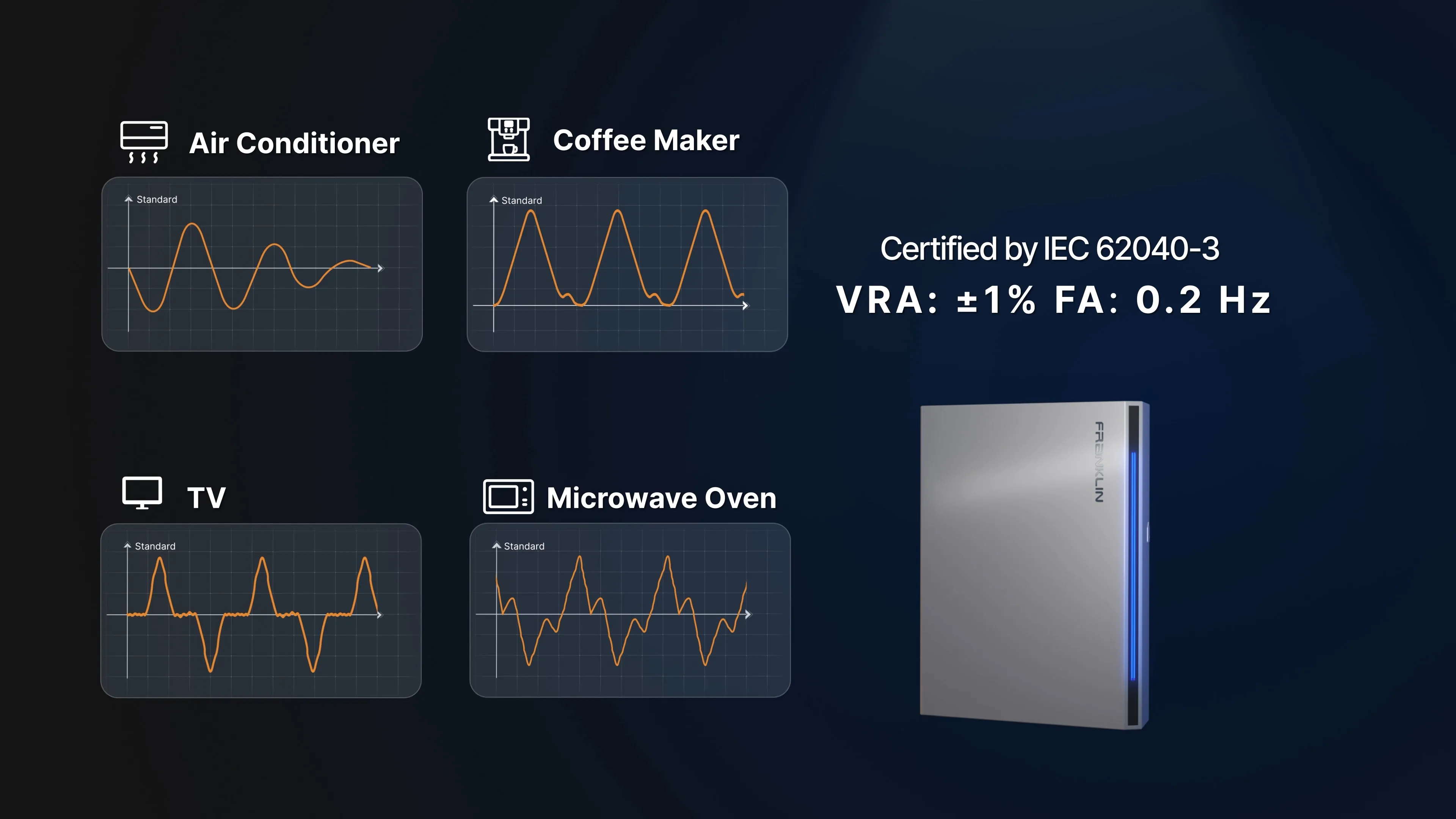 IEC 62040 is a globally recognized standard for verifying power performance and reliability in UPS systems. By meeting this standard, the FranklinWH System brings data-center-grade power stability and reliability for homeowners for the first time.