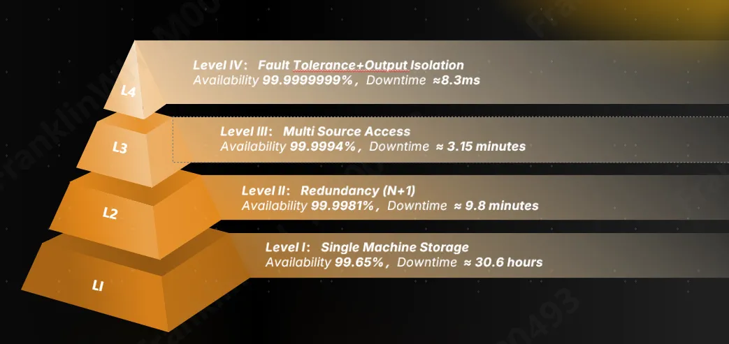 - Level IV: A highly redundant, fault-tolerant design with dual aGates and synchronization technology, achieving near–zero interruption power.