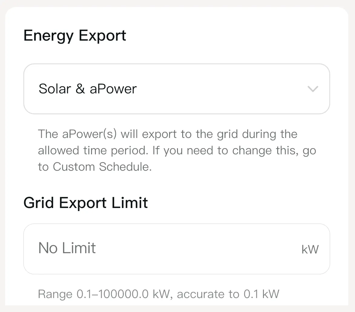 If Only Solar is selected, the aPower batteries will not export to the grid.