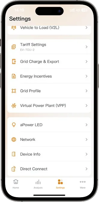 On your energy home screen, tap Settings > Virtual Power Plant (VPP).